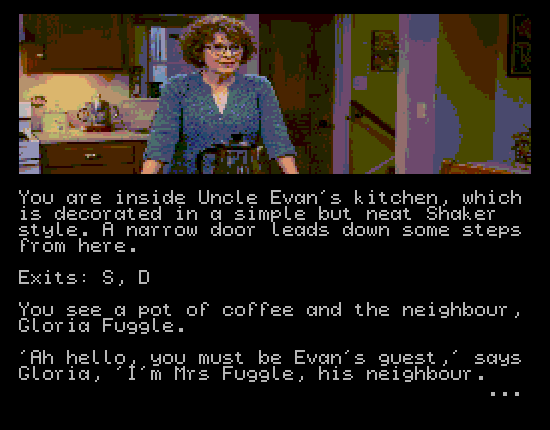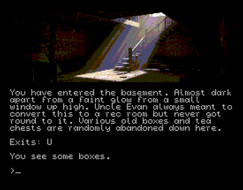 Having created the DAAD Ready code, I then decided to complete the circle and wrote a program to port that back to QL BASIC and end up with an alternative QL version. That version, which requires SMSQ/E and enhanced graphics, is now available to download. Hopefully it will be compatible with the updated QL core for the Spectrum Next, when that is finalised. For this version, I added (optional) sound effects and also ran the images through a "cartoonize" filter for a slightly different look.