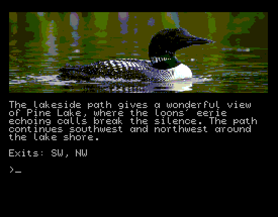 Speaking of the graphics, I made enthusiastic use of AI to create the location images. I think they work quite well, although some have suffered through resizing them down to 256 x 80 pixels for the Spectrum Next.