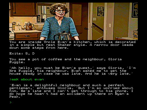 In this adventure, you will investigate the disappearance of your Uncle Evan, who went missing just before your long awaited arrival at his home in Canada. Why has Evan gone AWOL and what are the mysterious goings on at the nearby ski resort of Ryan's Peak? Could the two be linked? Will you be able to find Evan before it's too late?